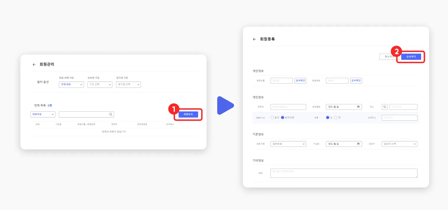 회원 등록 및 회원 정보를 관리하는 방법에 대한 설명입니다.