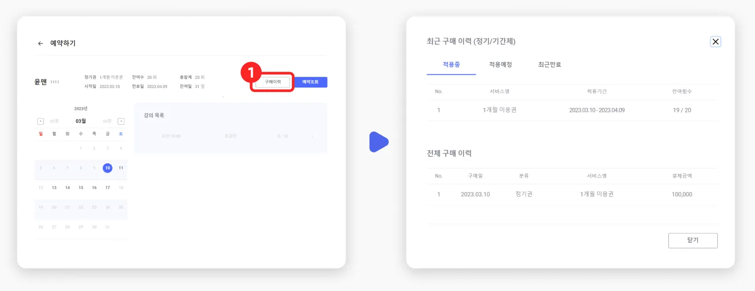 회원 출석 및 회원 이용에 필요한 기능들에 대한 설명입니다.
