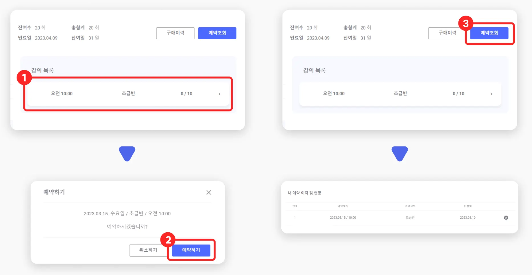 업장의 회원이 이용할 수 있는 예약 기능 및 페이지에 대한 설명입니다.