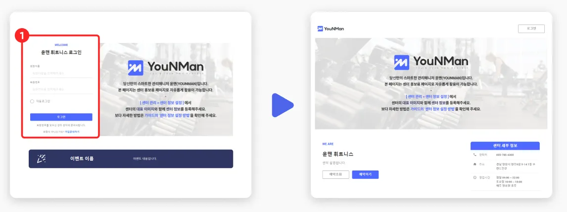 2. 회원 등록시 공지 후 ID와 비밀번호와 같이 사용하시면 됩니다.