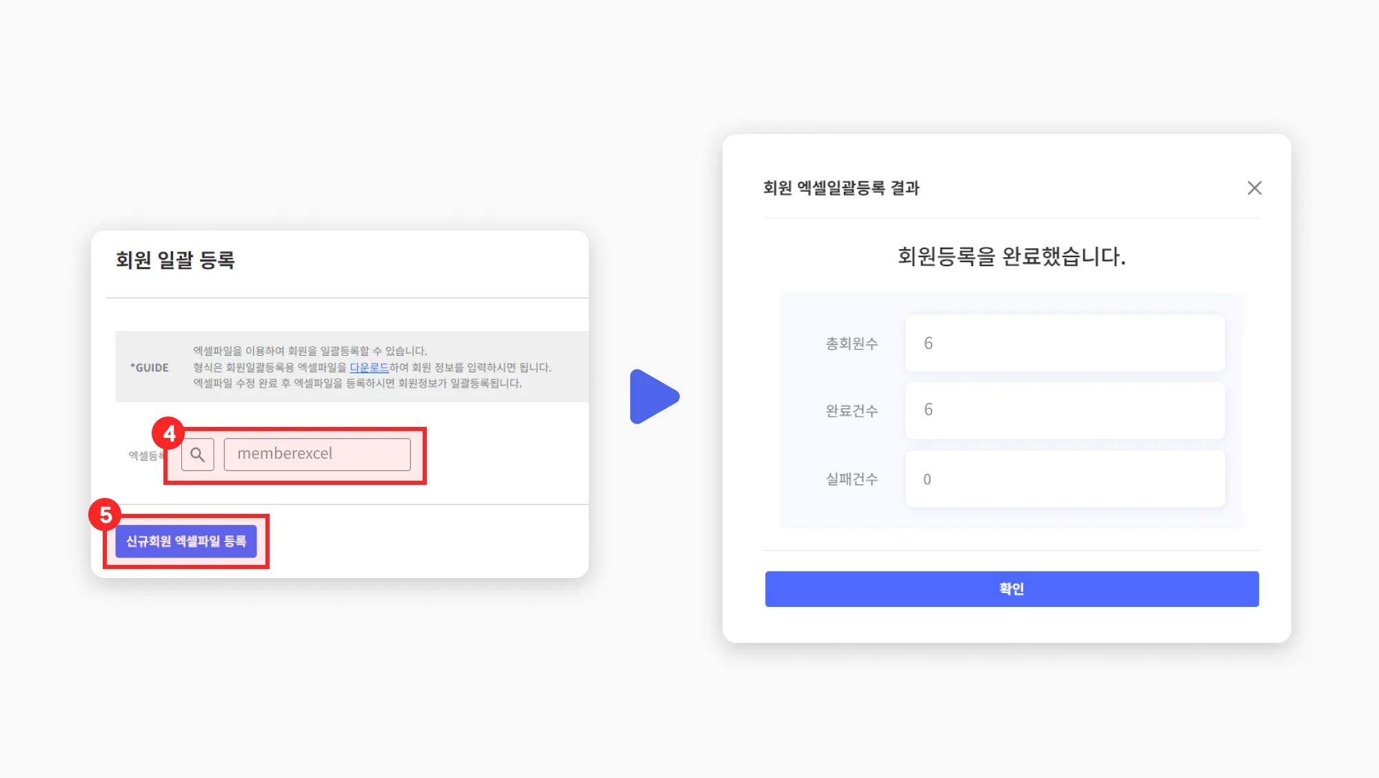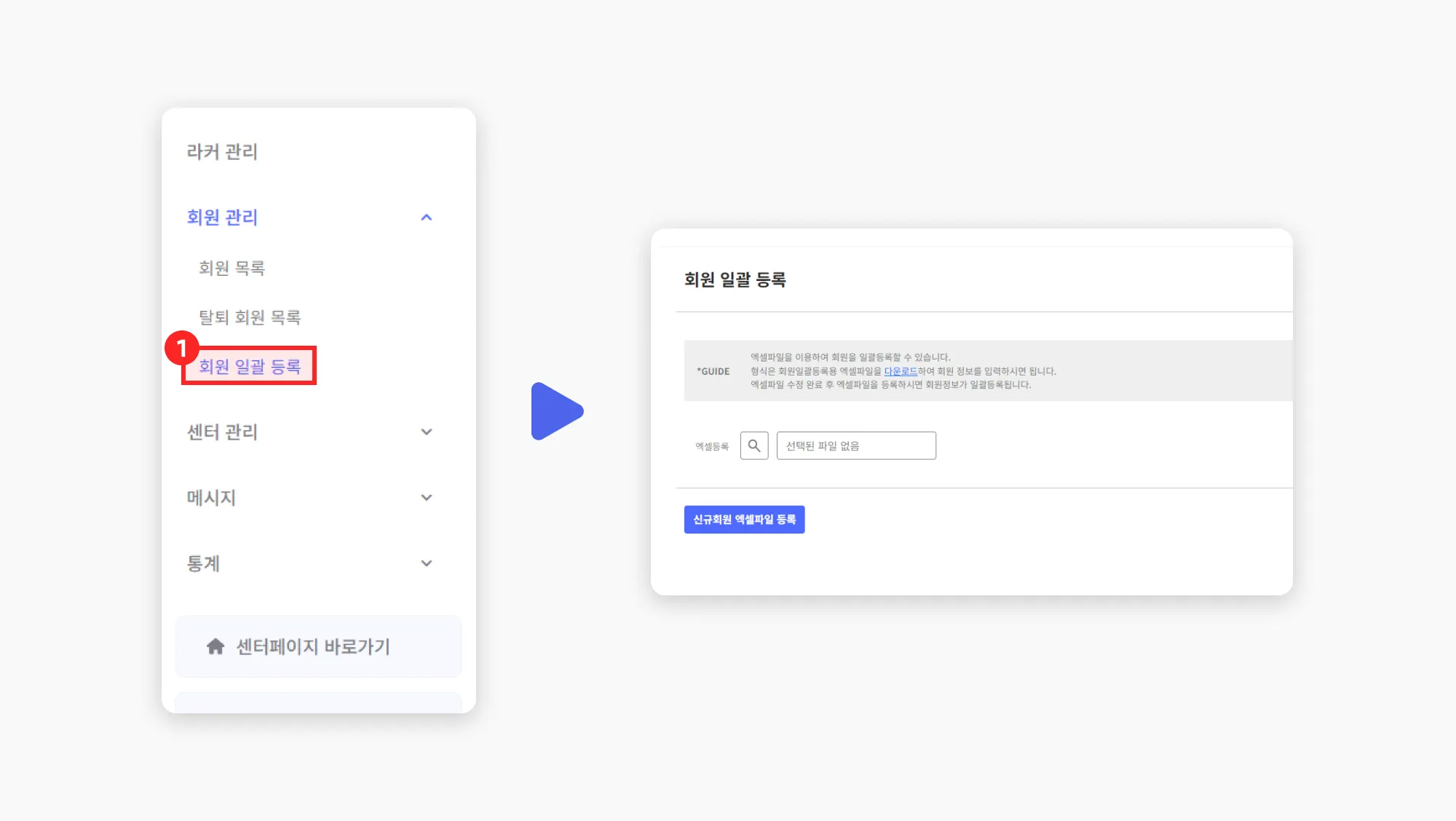 가이드의 다운로드 버튼 후 회원일괄등록용 엑셀파일 다운로드