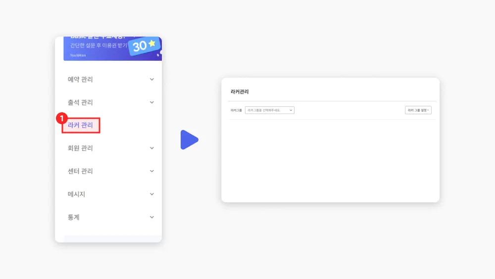 센터에서 운영중인 라커 설정 및 등록을 할 수 있는 방법입니다.