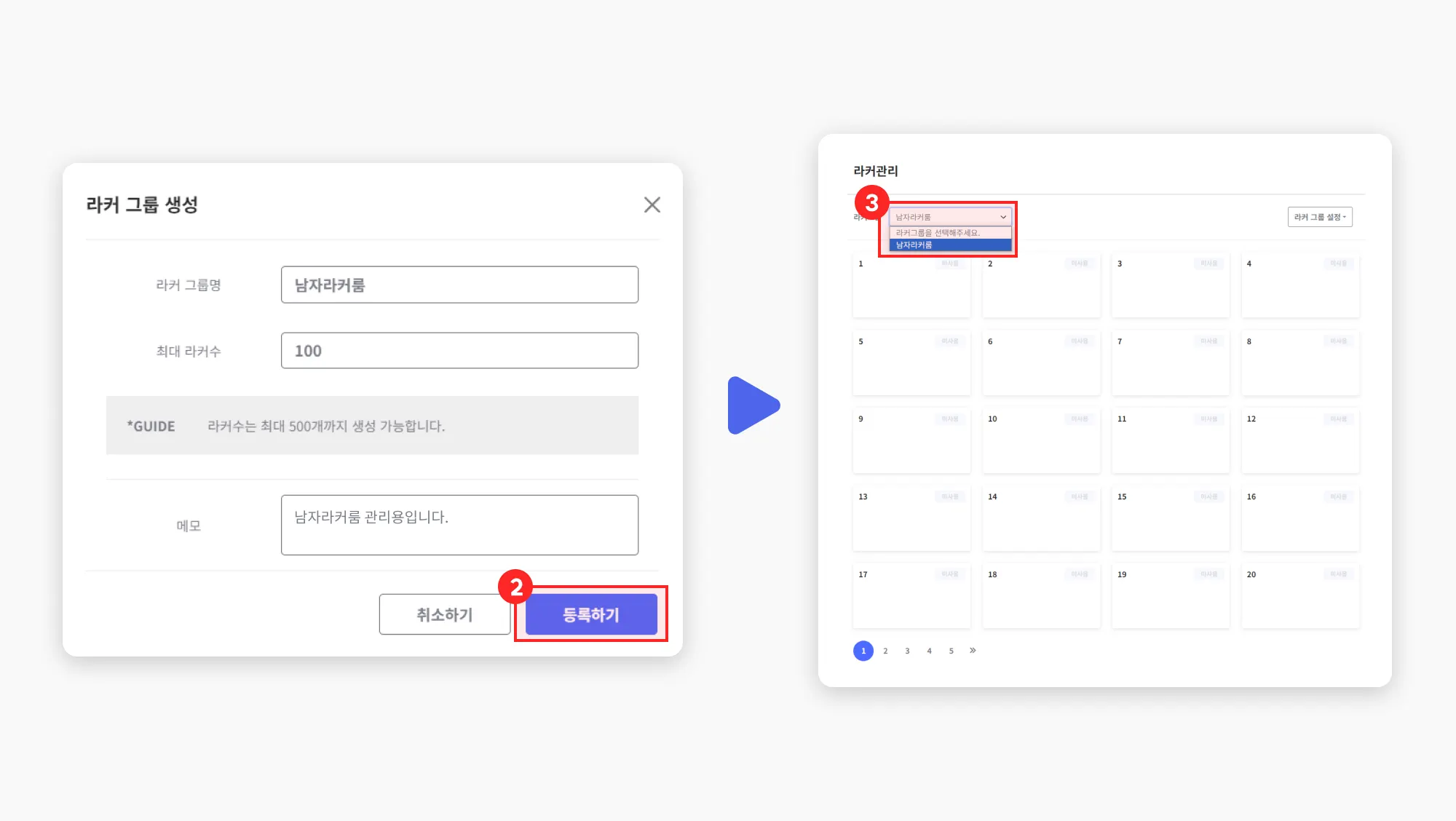 → 라커수는 최대 500까지 생성 가능합니다.